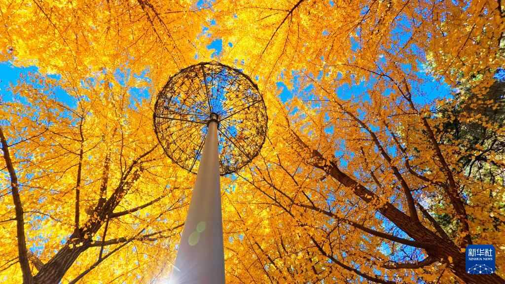 11月2日在北京奥林匹克公园拍摄的银杏林秋景。