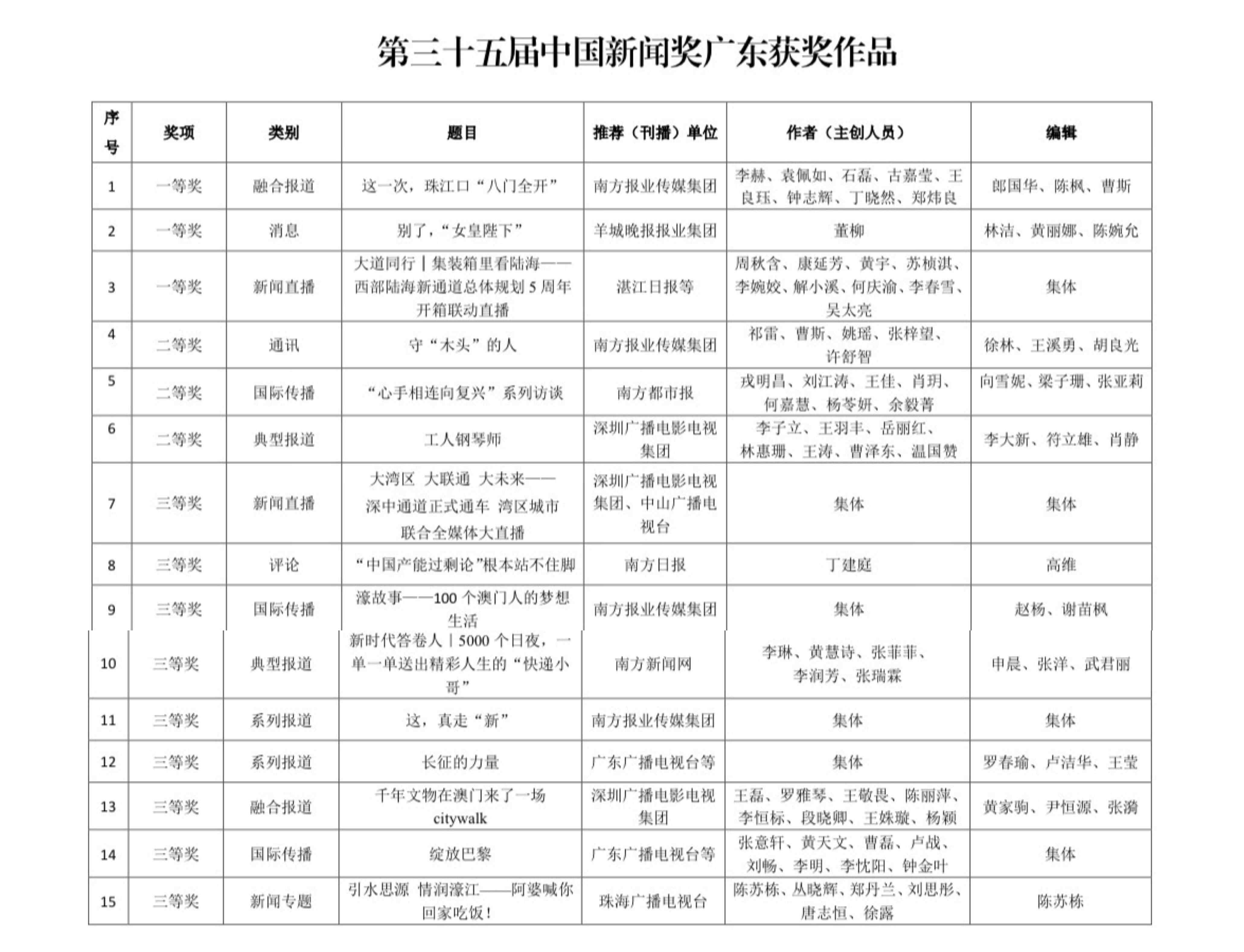 广东15件作品获第35届中国新闻奖,创历史最好成绩