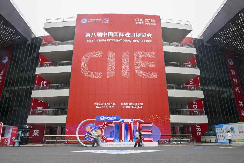 国家会展中心(上海),“四叶草”焕新迎客。“CIIE”“2025”字样与数字“8”的花卉造型格外醒目。