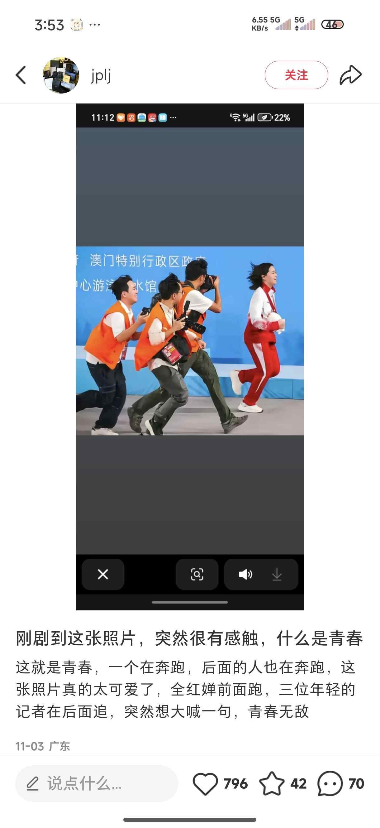这种本真,在11月2日的女团夺冠夜,已有迹可循。当压力的潮水退去,属于青春的活泼便肆意漫过赛场的每一个角落。有媒体捕捉到这样一个瞬间:全红婵像一只轻盈的鹿在前方奔跑,三位年轻的记者在后面笑着追赶。没有采访的正式,没有追逐新闻的紧迫,那画面里只有纯粹的、流动的欢欣。网友的评论一针见血:“青春无敌。” 那是卸下重担后,生命最原初的活力在闪光。