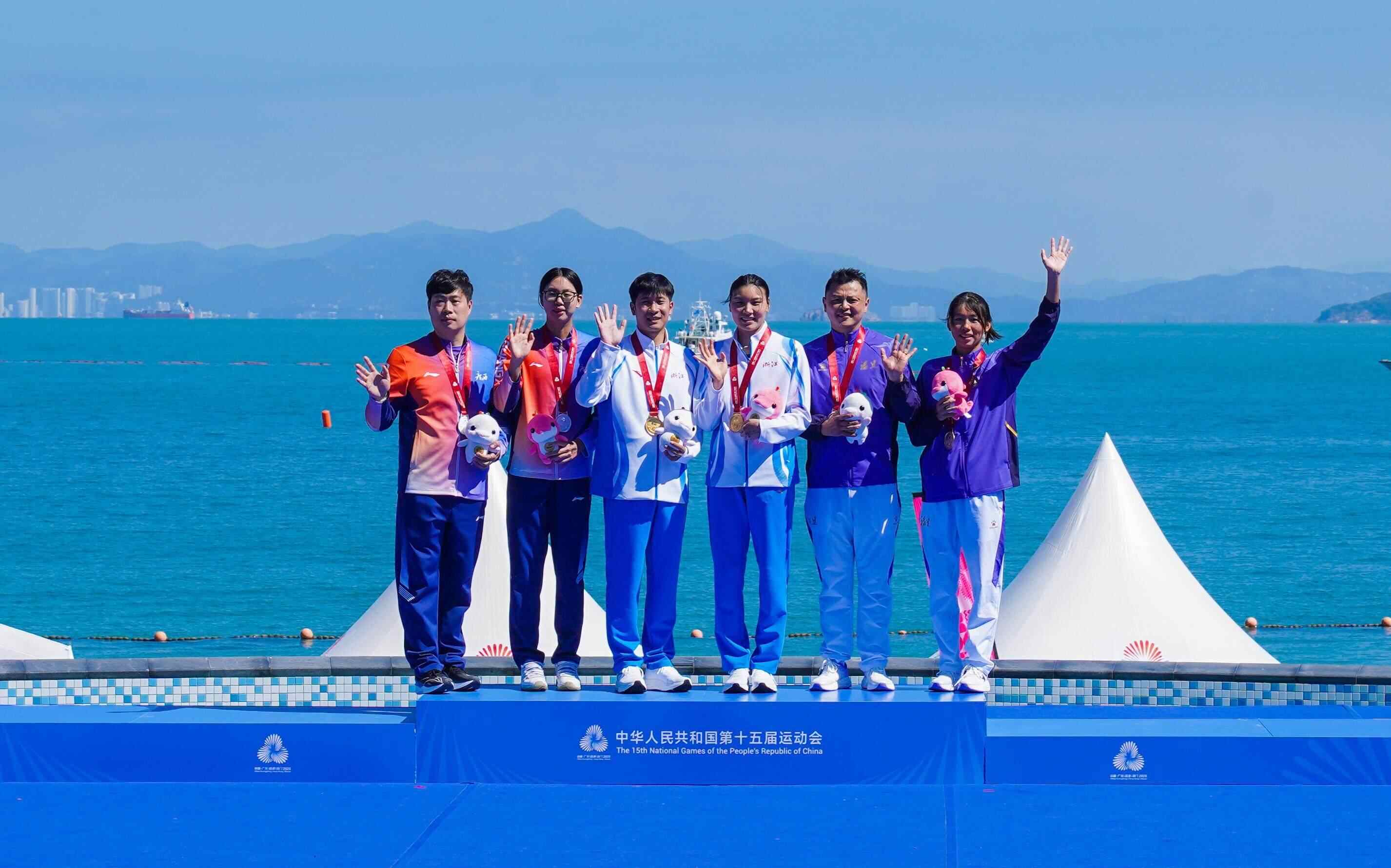 11月5日,第十五届全运会马拉松游泳赛在深圳市大鹏新区桔钓沙天然海域举行。这是全运会历史上首次在真实海况中举行的马拉松游泳项目。马拉松游泳赛分两天举行,5日为女子马拉松游泳决赛,6日为男子马拉松游泳决赛。当天9点开赛,全程10公里。当天女子马拉松游泳比赛共18支代表队,44名运动员参赛。获得金牌的是浙江寿仙谷代表队的柳雅欣,获得银牌的是广西浩沙代表队的尹芳芳,获得铜牌的是福建浩沙代表队的吴静萱。