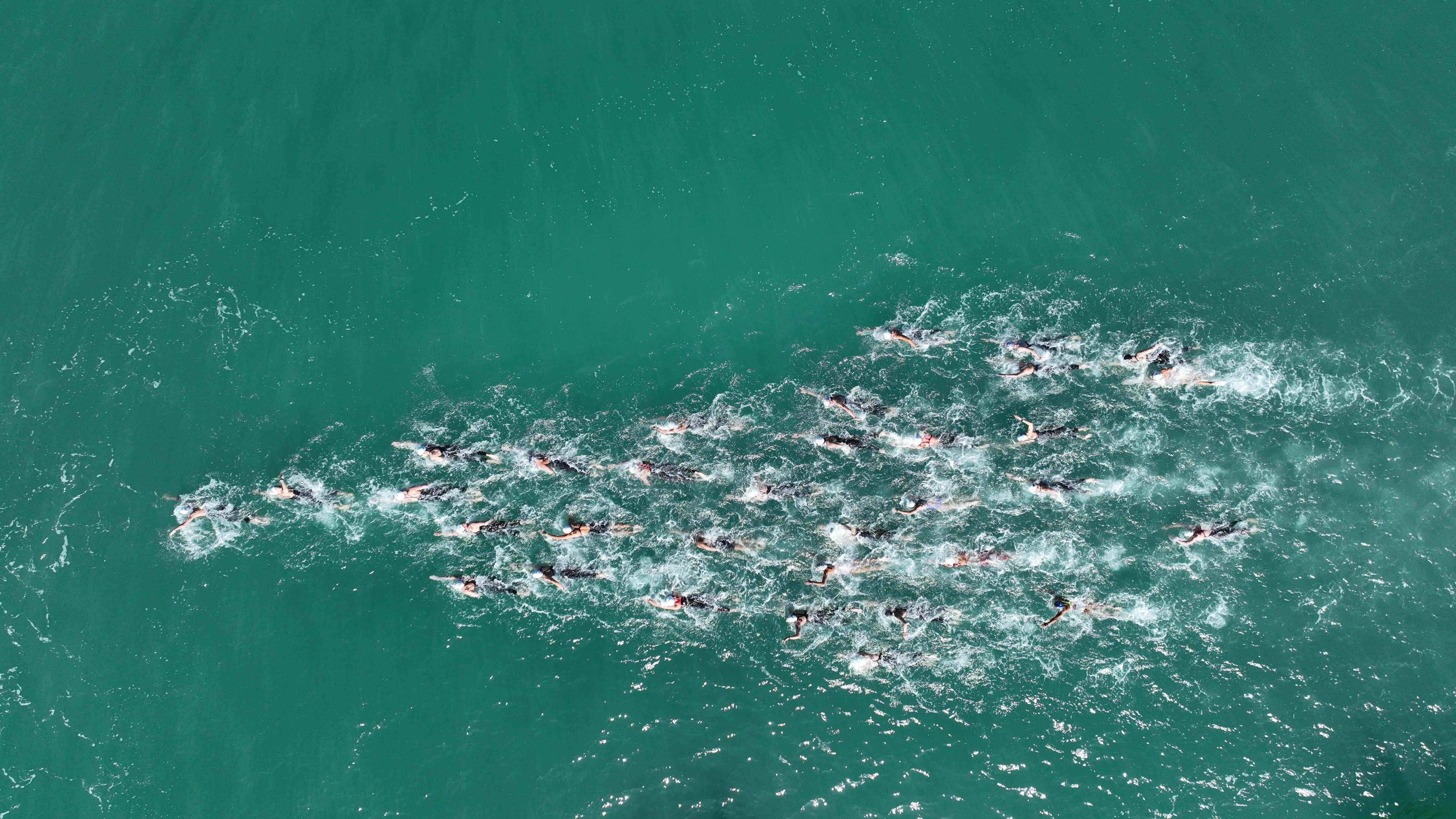 海上马拉松游泳,又称公开水域游泳,是一项极具挑战性的极限耐力运动。与室内游泳池比赛不同,海上马拉松游泳环境复杂,水温、海浪、海流、潮汐以及天气因素都会直接影响比赛条件和运动员的体能。海上马拉松没有清晰的水道线,运动员需通过“抬头看方向”来观察前方的浮标、引导船或岸上标志物来修正游进方向,极其考验运动员的直线导航能力。马拉松游泳距离为10公里,比赛时间长,是一项在复杂、开放的海洋环境中,以“最快完成者获胜”为基本原则,极度考验运动员体能、技术、战术、意志力和团队协作能力的综合性极限运动。