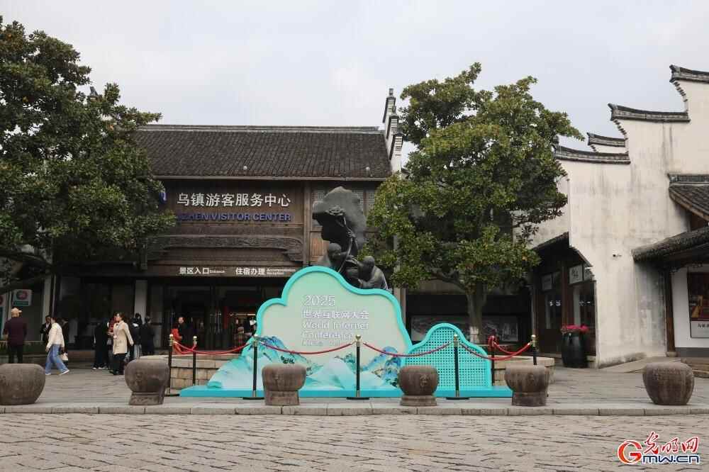 2025年11月5日,浙江乌镇,随处可见的乌镇峰会元素。