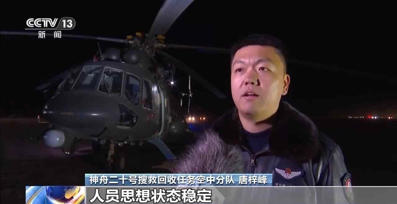 神舟二十号搜救回收任务空中分队 唐梓峰:目前我们已做好万全的准备,人员思想状态稳定,技术能力过硬,装备状态良好。我们整个空中分队有能力、有信心圆满完成回收任务。