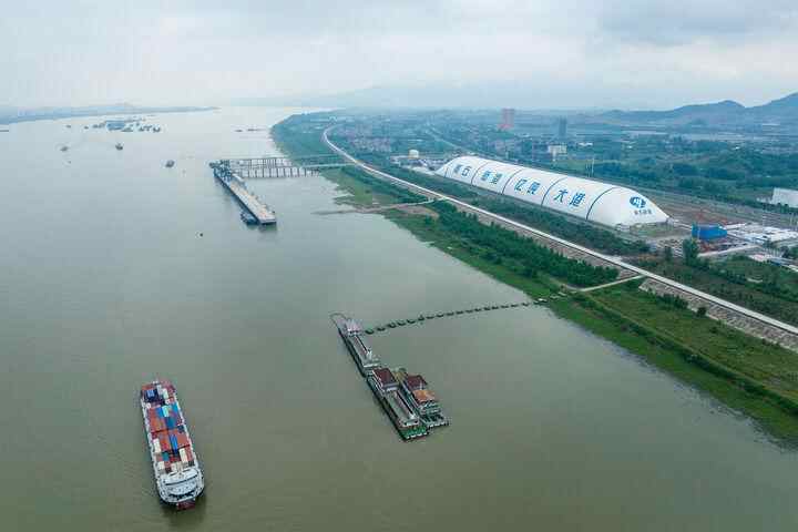 这是2024年6月5日拍摄的黄石新港三期工程(无人机照片)。新华社记者 伍志尊 摄