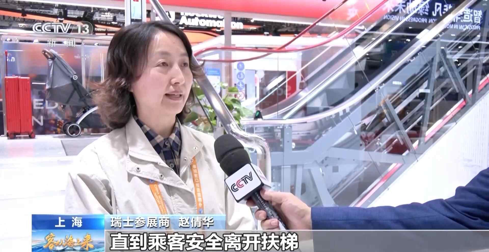 瑞士参展商 赵倩华:当系统识别到乘客在扶梯上摔倒时,扶梯的速度自动降低至50%甚至更低,直到乘客安全离开扶梯。技术还在持续优化中,我们希望这款产品能够尽快从进博会的展台走向中国的不同城市。