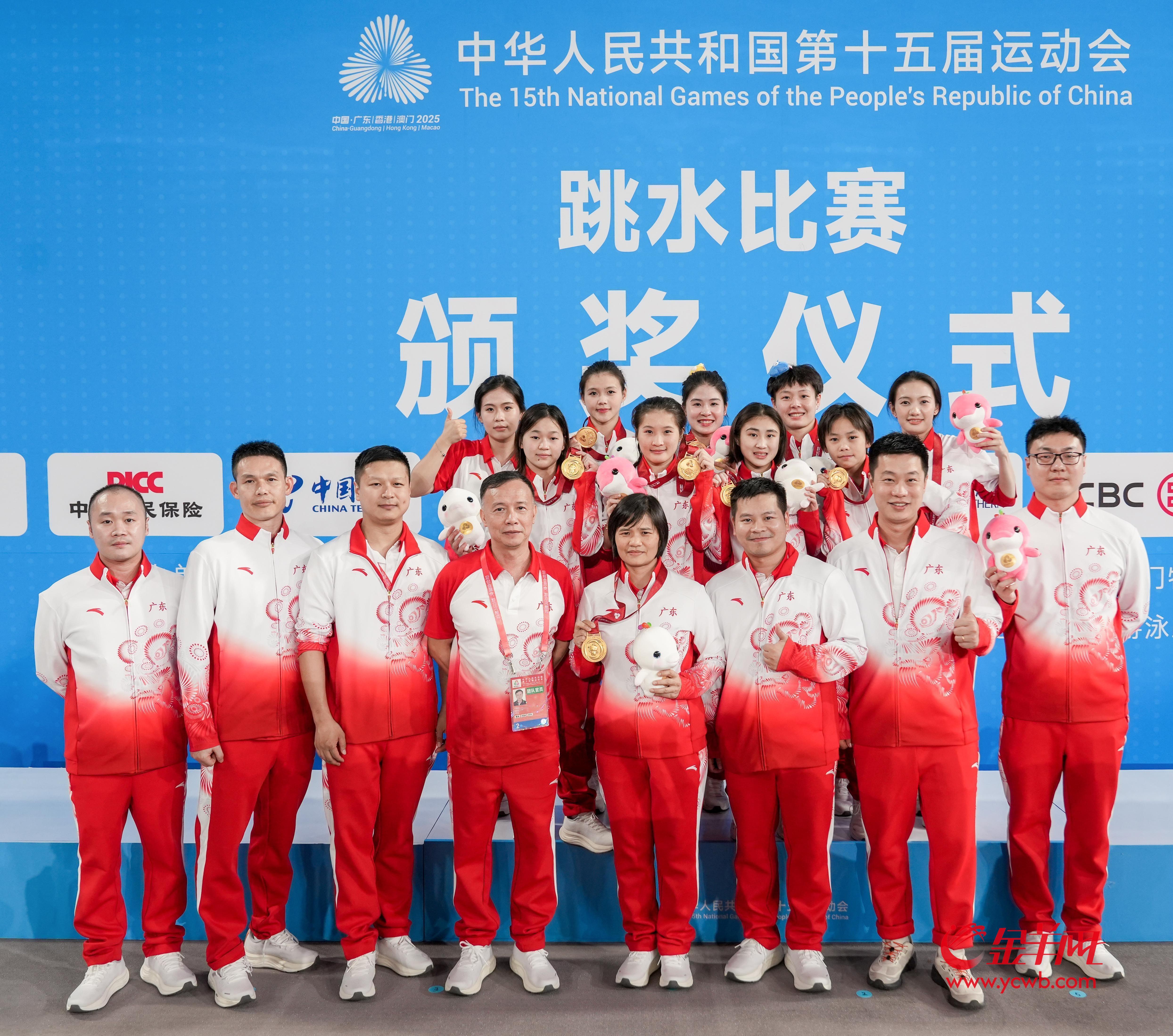 广东跳水队还有谢思埸、陈艺文、陈艾森等多位奥运冠军坐镇。其中,谢思埸在男子3米板项目中技术全面,陈艺文则是女子3米板项目中的翘楚,陈艾森则在男子10米台项目中极具竞争力。在3日进行的男子团体项目决赛中,谢思埸、陈艾森领衔的广东队斩获了跳水项目的第二枚金牌,实现广东跳水队男团八连冠伟业。4日,在广东奥体中心进行的十五运跳水女子个人全能决赛中,王伟莹以总分700.20分夺金,为广东队在跳水项目上收获第三枚金牌。
