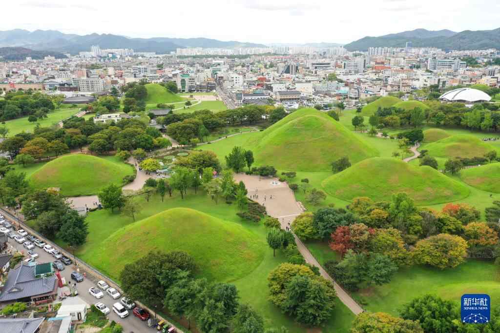9月21日拍摄的韩国庆州的大陵苑景区一带(无人机照片)。