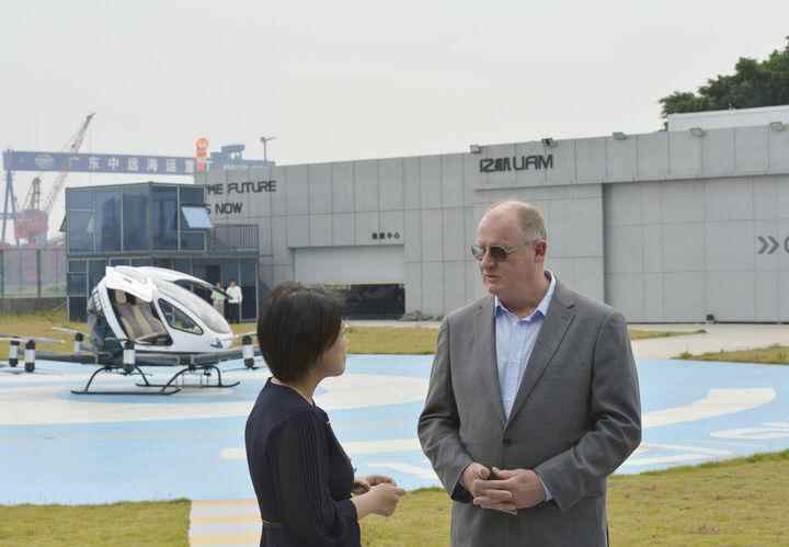 在广州穗港码头,记者遇到南非SSASS公司CEO迪安·波莱,他正兴奋地体验亿航智能公司生产的无人驾驶电动垂直起降飞行器(eVTOL)。“上个月,亿航智能的无人驾驶载人eVTOL在卢旺达完成非洲大陆载人首飞,我在现场感觉非常震撼,这次专程来考察。”波莱说。