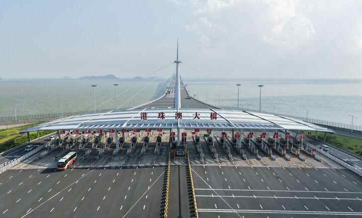 这是2025年10月19日拍摄的港珠澳大桥入口(无人机照片)。新华社记者 邓华 摄