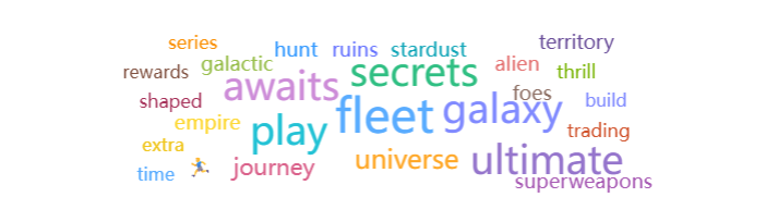 在买量投放上《Foundation》也充分利用了题材,广告素材基本都贴合星际科幻。根据AppGrowing显示,广告素材文案关键词以星际、宇宙、舰队、外星人等科幻关键词为主,素材前3秒关键词以船舱、残骸、飞船等探索和建造相关的关键词为主。