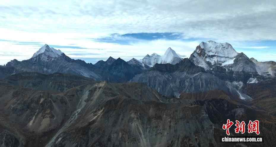 10月30日,在稻城亚丁风景区,航拍仙乃日峰、央迈勇峰、夏诺多吉峰(右起)。稻城亚丁风景区位于四川省甘孜藏族自治州,属国家级自然保护区、四川省级风景名胜区和世界生物圈保护区。亚丁藏语意为“向阳之地”,今年10月1日至10月28日,景区接待游客约18.9万人,其中海外游客超1万人。(无人机照片)