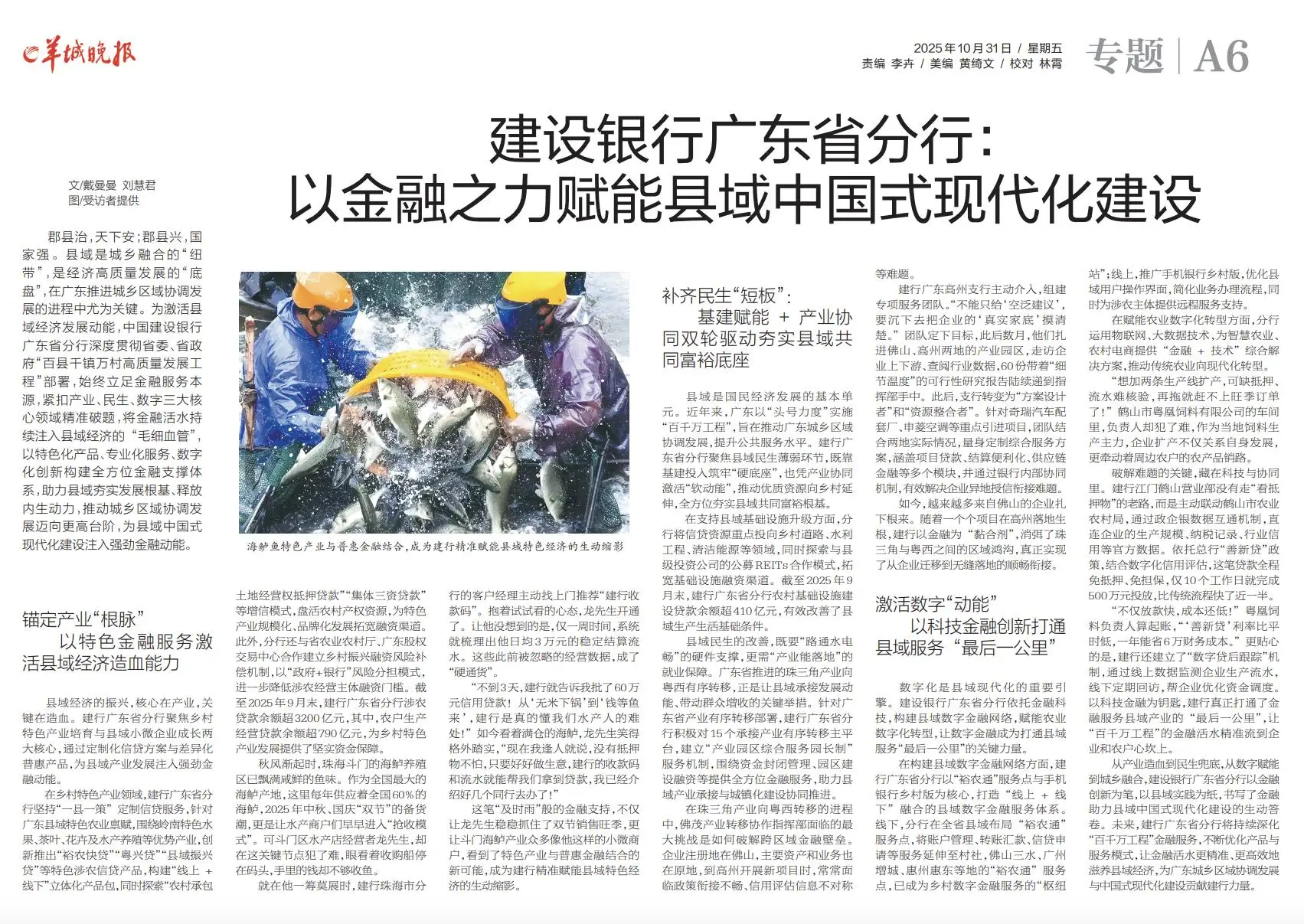 从产业造血到民生兜底,从数字赋能到城乡融合,建设银行广东省分行以金融创新为笔,以县域实践为纸,书写了金融助力县域中国式现代化建设的生动答卷。未来,建行广东省分行将持续深化“百千万工程”金融服务,不断优化产品与服务模式,让金融活水更精准、更高效地滋养县域经济,为广东城乡区域协调发展与中国式现代化建设贡献建行力量。