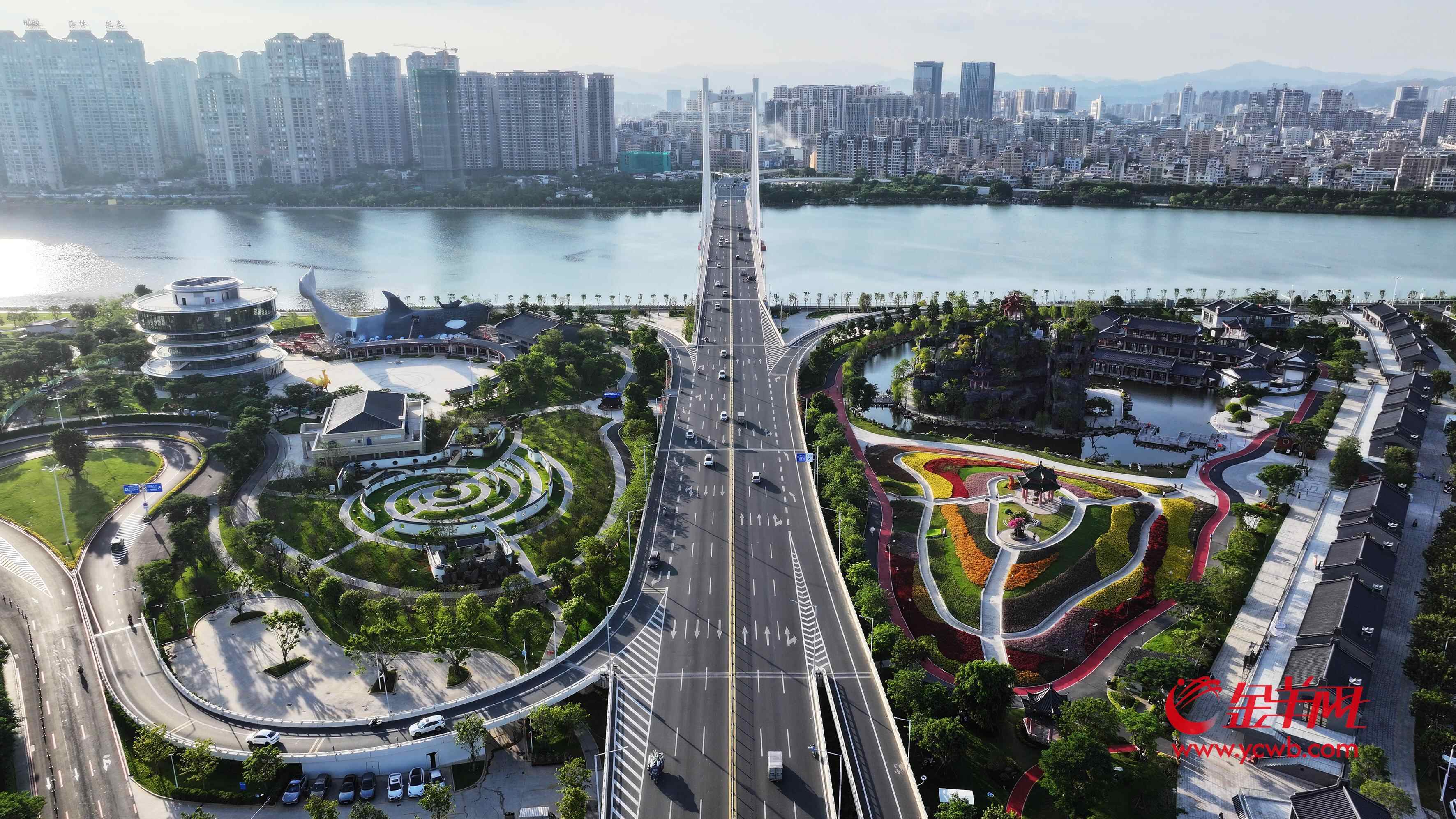 如今,那条环岛碧道犹如一条湛蓝丝带,5.4公里长的彩色沥青路面科学实现了人车分流。沿途,休息区、观景台巧妙串联,更精心设置了观赏韩江日出日落的绝佳“打卡点”。数百株新植的蓝花楹静待繁花满枝、蔚然成荫;四座亲水平台探入粼粼波光,邀请人们在此奔跑、漫步,尽情感受江风的轻柔抚慰。