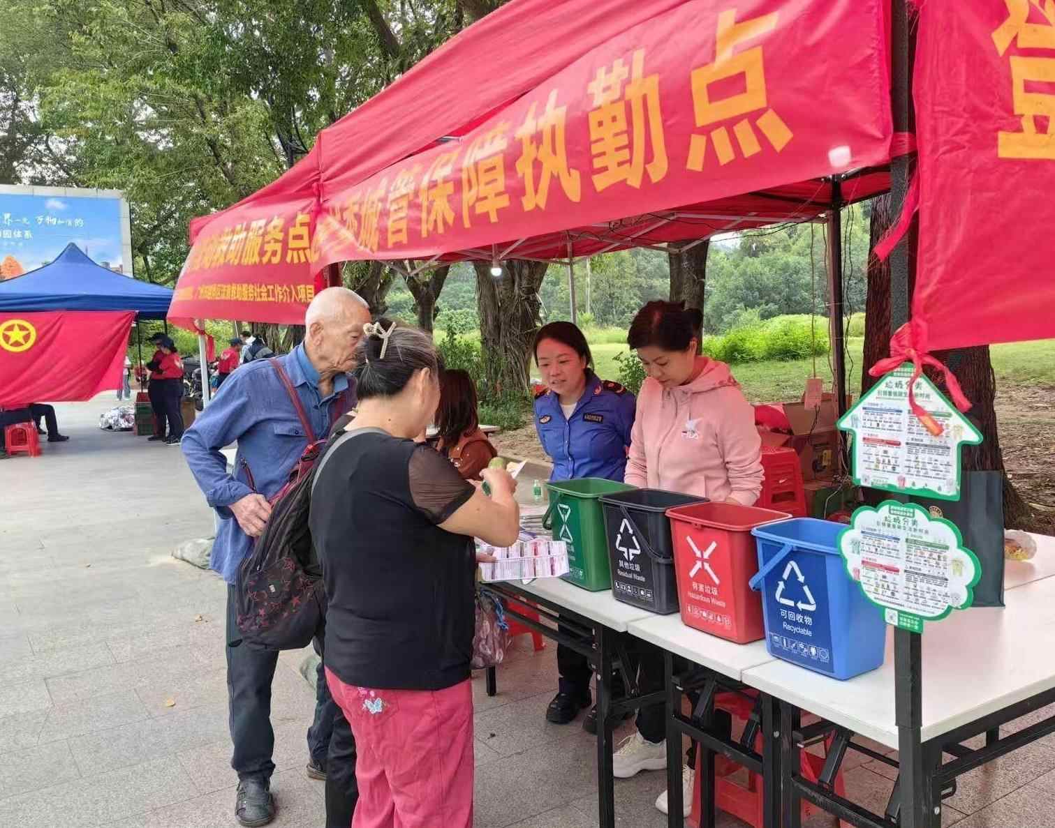 越秀区登峰街道在白云山南路设立垃圾分类宣传点,开展“重阳登高,分类先行”主题宣传活动。现场工作人员向市民游客讲解垃圾分类知识,并通过知识问答等互动形式,引导公众在登山过程中自觉践行垃圾分类。