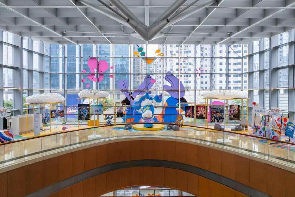 在L1层西广场的《云游者踪迹》中,“云宝”身着融入满洲窗元素的服饰,手捧木棉花,以广式热情迎接到访大湾区的“云嘟嘟”,象征着跨文化友谊的萌生,也邀请公众步入广场空间,成为他们旅途中的玩伴,共同开启一段岭南风情的艺术旅程。