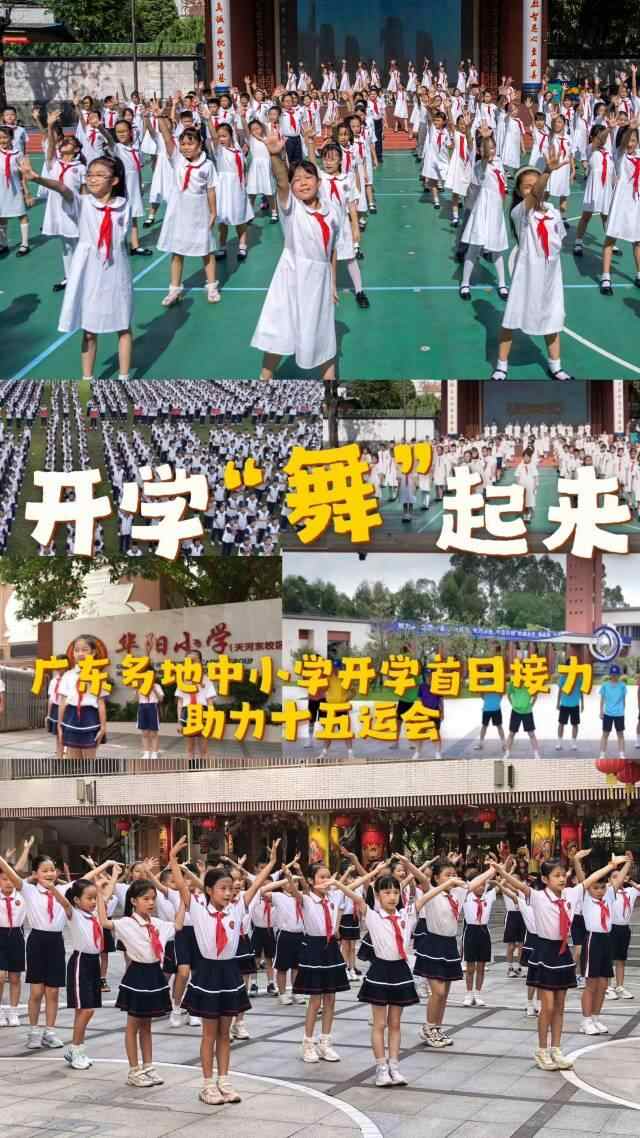 这不是一场编排精致的演出,而是一次来自市井街巷的律动回响。从盛夏到深秋,这场舞动如涟漪般扩散。田间地头,恩平昌梅村、花都塱头村的村民们欢乐比“舞”,在稻浪清风间舒展身心;交通枢纽,茂名柏桥服务区、广州白云地铁站的旅客停下匆匆脚步,加入快闪队伍随性舞动;菁菁校园,万千学子在开学日的操场上活力齐舞,以青春姿态呼应全运节奏;粤港联动,TVB艺人、高校学子与志愿者们隔空“共舞”,传递湾区同心……