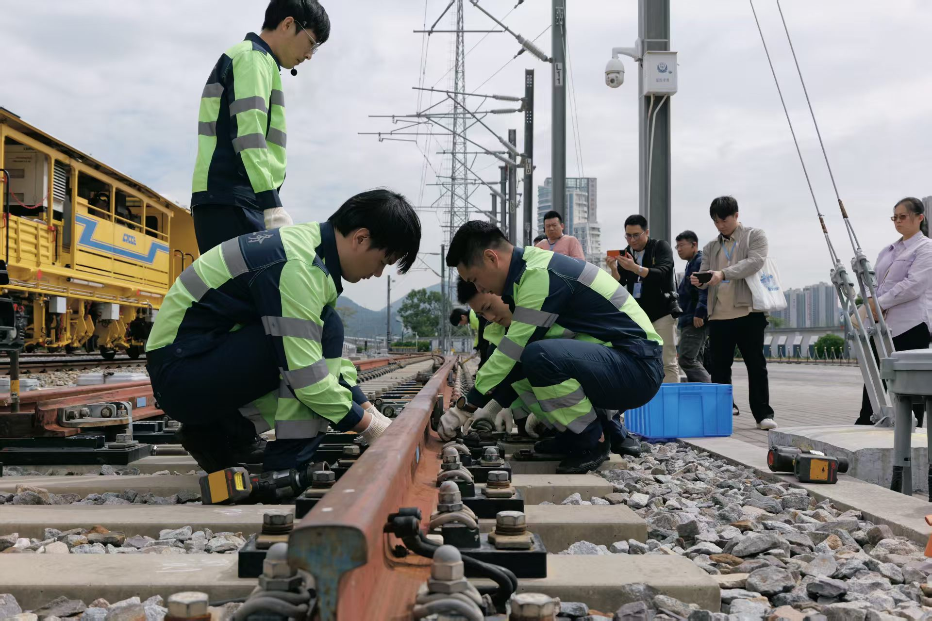 高铁引擎持续发力,拉动沿线经济加速奔跑,人流如织,货如轮转,为粤港澳大湾区高质量发展绘就更广阔的图景。而寂静的夜里,正是“高铁侠”们挥汗如雨的工作时间,他们要趁此时做精密检查,默默守护着铁路安全。