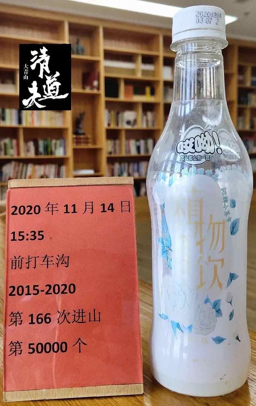 “瓶子展柜”:每捡满5000个瓶子,就收藏一个标注时间地点的瓶子,作为阶段纪念,这也是他完成“十年捡十万个瓶子”“青山之约”的点滴记录,每一个“纪念品”都在鼓励他坚持下去。