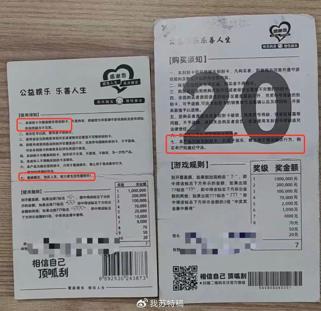 最后,正规彩票的票背印有发行机构、公益金贡献金额和官方网址等信息,而整蛊彩票要么信息不全,要么会暗藏“娱乐道具”的免责字样。