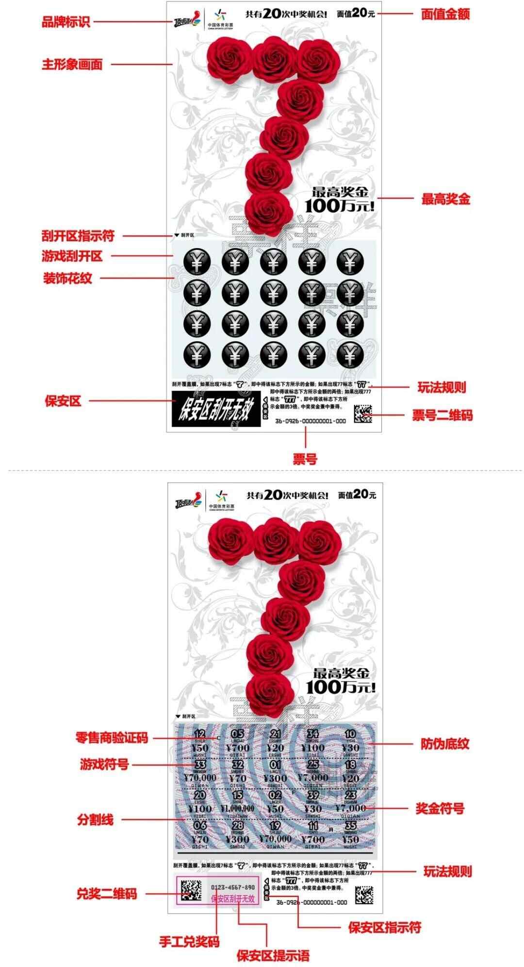 此外,正规彩票的票面印有体彩+顶呱刮标识及面值金额,刮开后的游戏区域有防伪底纹,且游戏符号、奖金标志清晰易辨别。而整蛊彩票则恰恰相反,其票面往往缺失最关键的官方标识和面值。