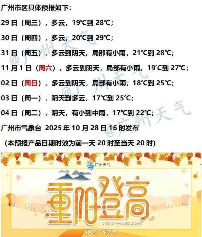 广州方面,入秋了的广州,这两天气温会有小幅度回升,新的冷空气要在31日之后补充了,不过夜里清凉,要夜里登高的家人们,别忘了带件薄外套。
