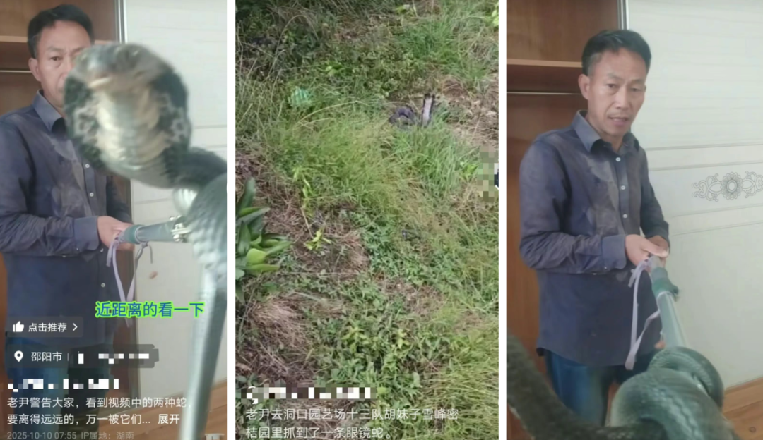 记者在其账号主页搜索发现,其曾发布多条捕蛇相关视频,均为眼镜蛇、银环蛇等剧毒种类。更令人百思不解的是,仅仅在19天前(10月9日)他发布的一条视频中,就曾科普过银环蛇毒性。视频文案为“银环蛇,亚洲毒王,万一被它咬到,第一时间打120,两个小时之内一定一定一定要打血清,记住一定要在两小时之内打血清!”说明其对银环蛇毒性的了解远比一般民众深刻。