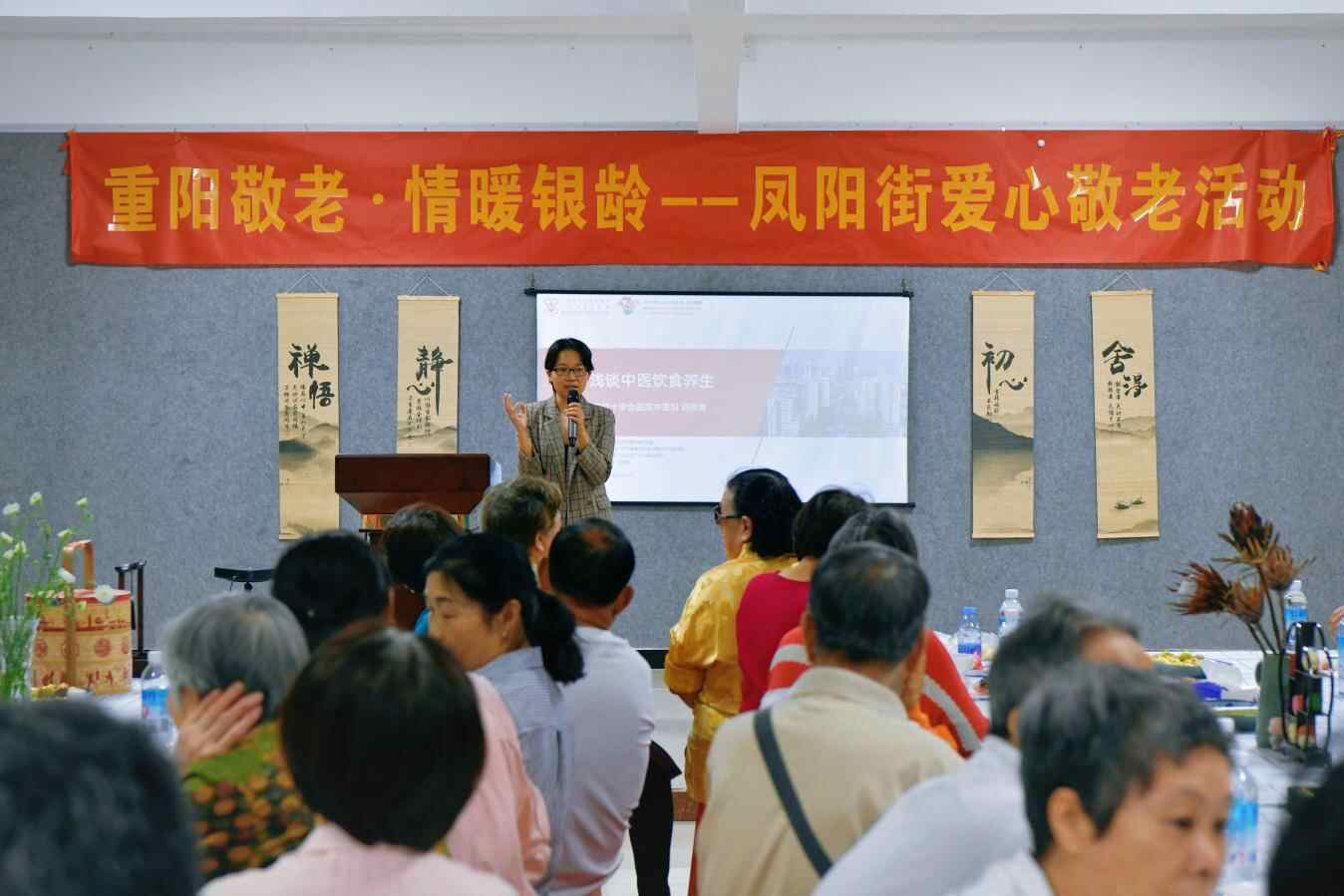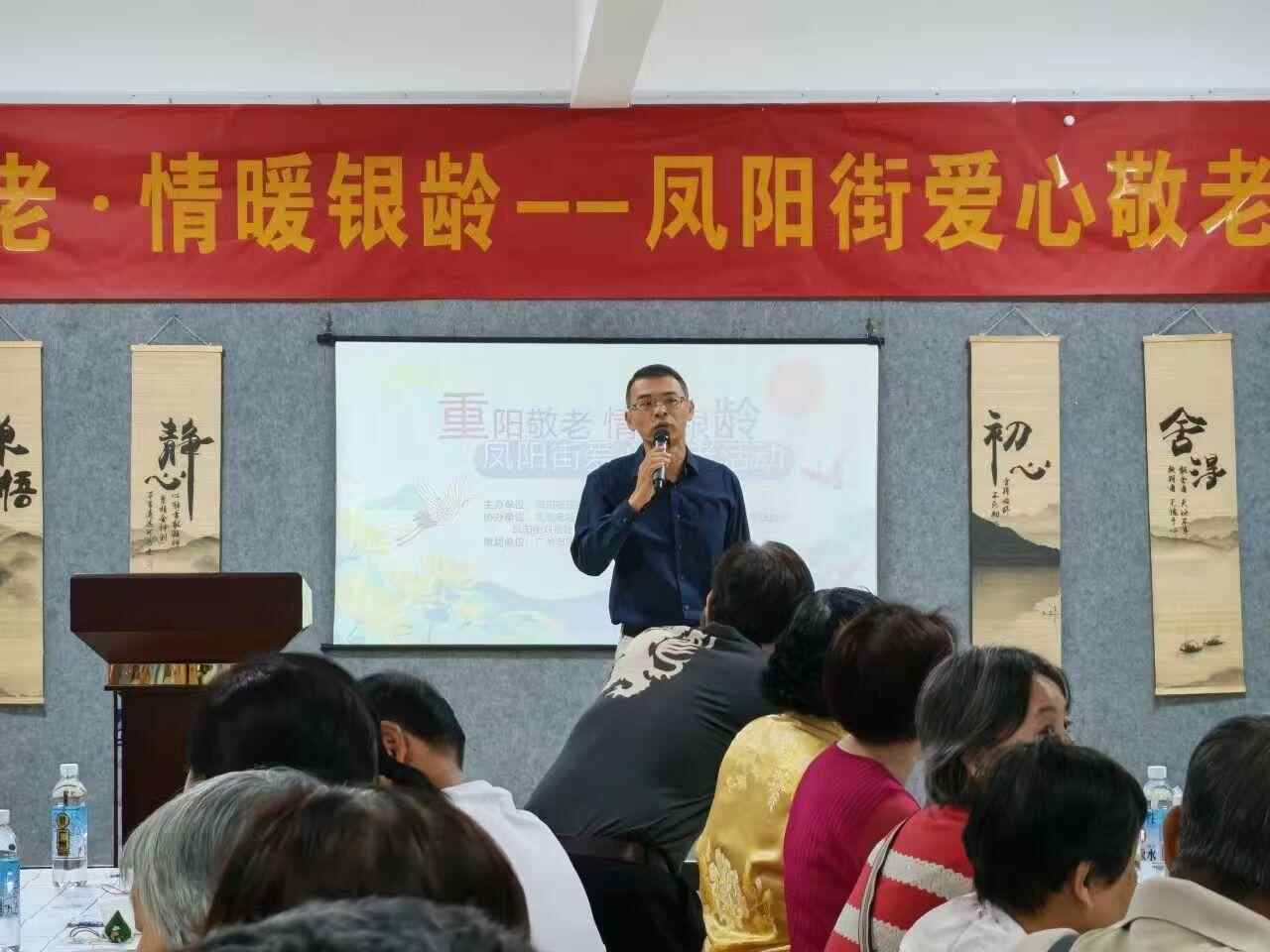 金秋送爽重阳至。2025年10月29日,凤阳街道文化活动中心内欢声笑语不断,五十余名长者齐聚一堂,参与“重阳敬老·情暖银龄”凤阳街爱心敬老活动。本次活动由凤阳街道办事处、凤阳街公共卫生委员会主办,凤阳街社区卫生服务中心、凤阳街道文化活动中心、凤阳街道商会、凤阳街双百社工站、凤阳街颐康中心、广东烹饪协会协办,活动内容丰富多元,兼顾健康关怀与文化互动。凤阳街道二级调研员李锐出席活动并致辞,为全体长者送上节日祝福。