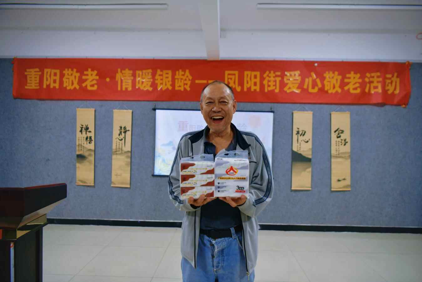 广州市海珠区知惠文化活动策划中心捐助的活动小礼品为本次活动的开展提供了爱心支持。此次活动不仅为现场参与的长者派发重阳敬老礼品,凤阳街道同步组织力量将礼品覆盖派发至街道各社区,确保更多长者群体感受节日祝福,实现了“情暖银龄”的广泛传播。