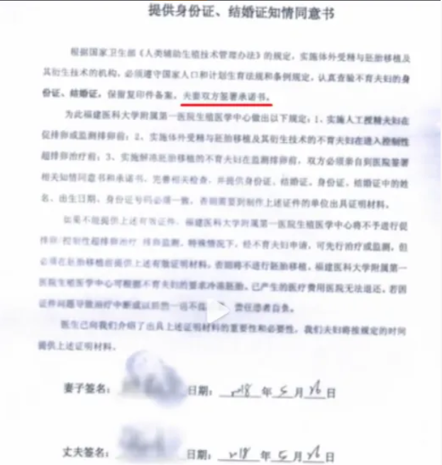 被告医院代理律师林柏冬介绍,相关事项需要两夫妻共同与医疗机构签字、确认,并提供相关的证明文件,手续才符合相关的法律法规和管理办法。李女士一人前来,不符合相关规定,因此医院只能拒绝。