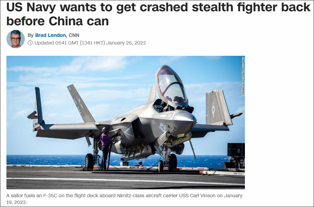CNN当时一篇文章的标题就是:在东方大国出手前,美国海军希望将坠海战机打捞上来。