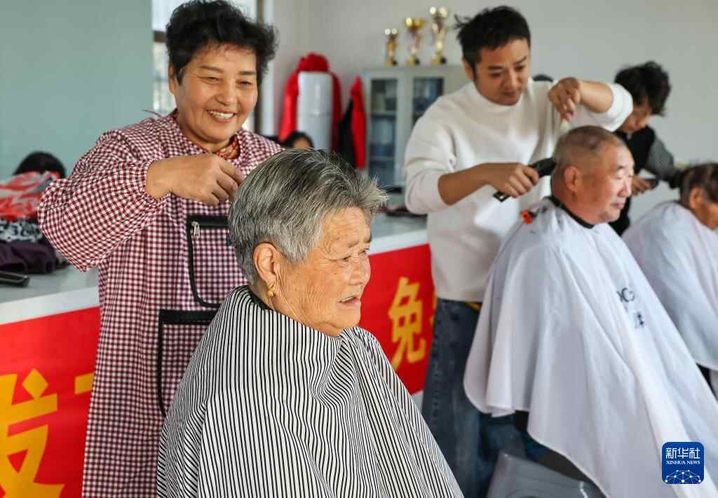10月27日,在江苏连云港经济技术开发区中云街道胜利村,理发师为老人免费理发。