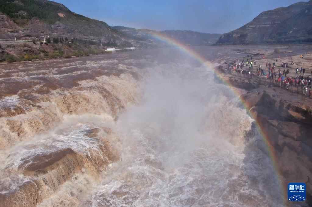 10月27日,位于山西吉县和陕西宜川县交界的黄河壶口瀑布景区天气晴好,飞溅的水雾在阳光照射下,形成一道壮美的“彩虹桥”。
