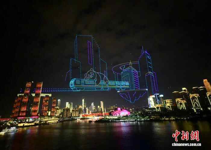 无人机灯光秀点亮重庆夜空 科技美学绘就城市华章