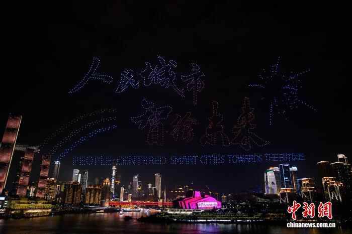 无人机灯光秀点亮重庆夜空 科技美学绘就城市华章