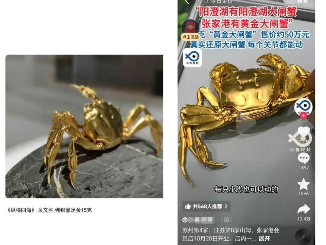 公开资料显示,吴文胜手工打造的黄金大闸蟹,曾亮相“时间的风土-苏州手工艺的社会景观展览”。