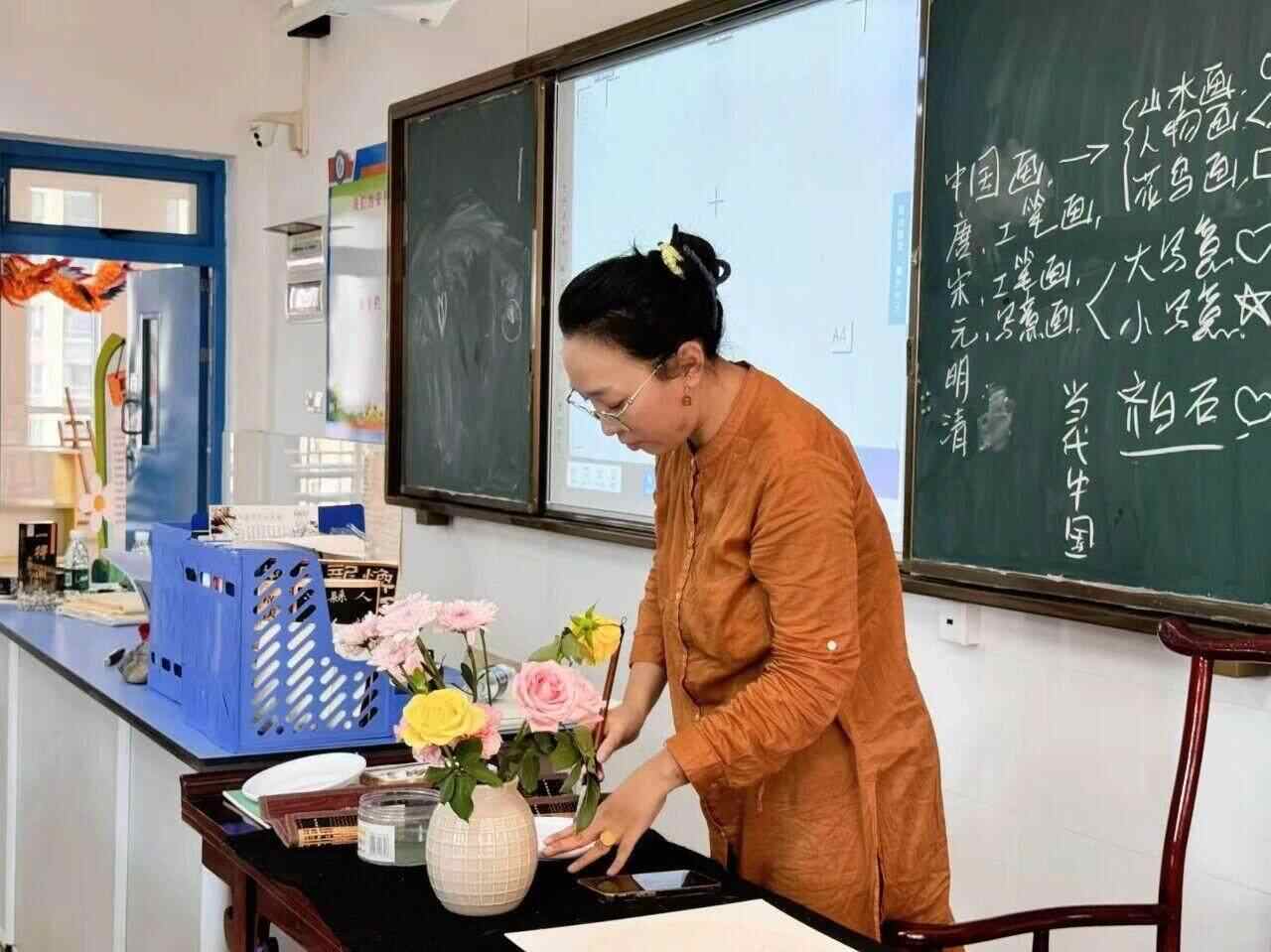 卢诗韵老师为同学们带来了一堂生动的国画花卉课,卢老师以其深厚的花鸟画功底,向同学们细致讲解了国画中花卉的构图、用笔与用墨之道。课堂上,卢老师更是亲执妙笔,进行了精彩的创作示范。只见笔墨在宣纸上晕染流转,寥寥数笔,一朵朵形态生动、意趣盎然的花卉便跃然纸上,引得同学们阵阵惊叹,充分感受到了中国传统水墨画的独特魅力。
