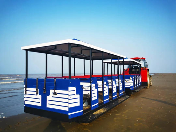 记者注意到,事发的观光小火车 “车厢”未设窗户,两侧呈开放式,每次可以乘坐20人左右,此外,小火车未铺设轨道,直接行驶在沙滩上,在强风天气下可能会影响驾驶的稳定性。