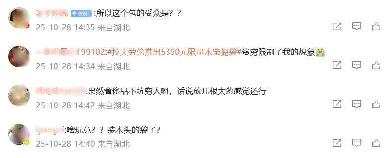 近日,有网友发帖,展示拉夫劳伦(Ralph Lauren)官方旗舰店一款售价5390元的“牛绒面革木柴提袋”,其宣传图中提袋内装有木柴,不少网友对该产品的设计及目标受众表示好奇,引发讨论。