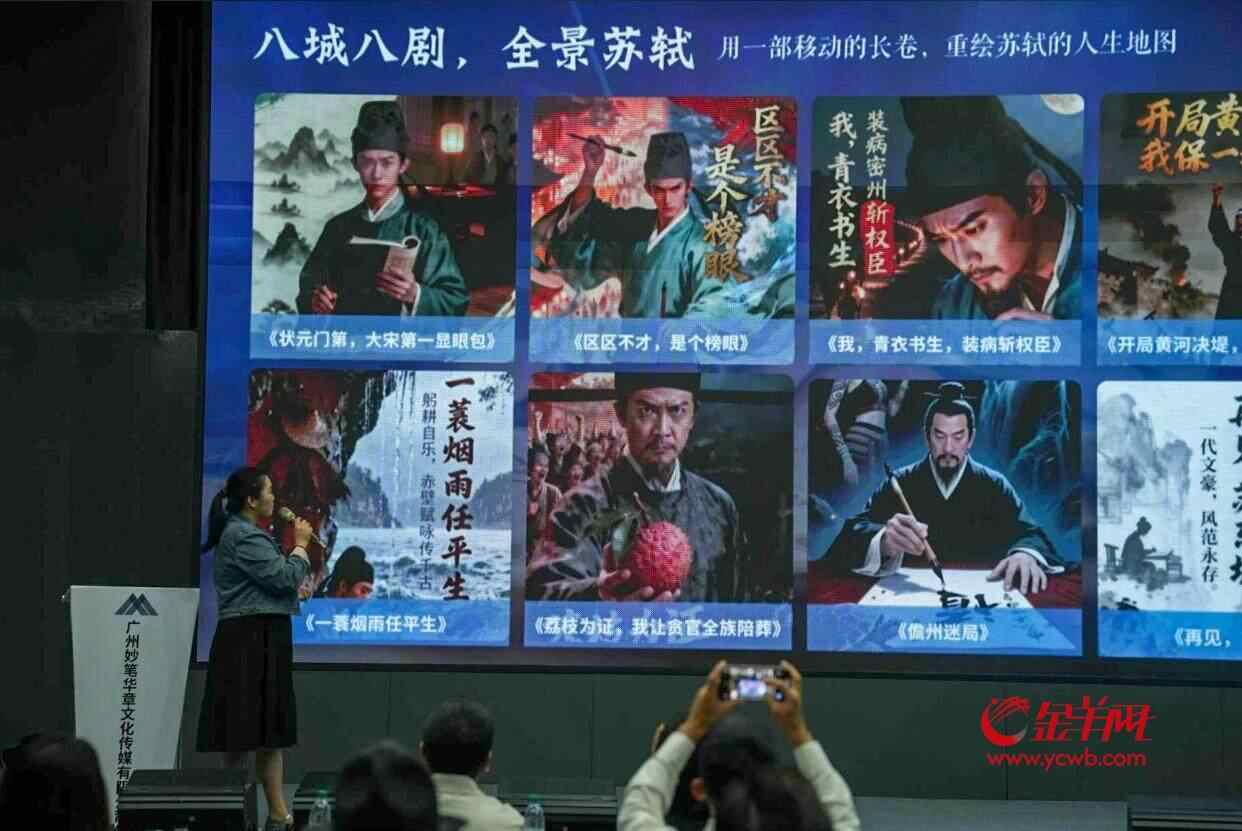 据悉,妙笔华章未来一年将储备超百部短剧,涵盖历史、神话、悬疑等多元类型。其中“苏东坡AI短剧系列”,以北宋文豪苏轼为主角,结合AI技术还原宋代风物,通过《大宋第一显眼包》《区区不才,是个榜眼》等网感剧名,平衡历史厚重感与年轻化表达。同步亮相的,还有AI漫剧《黑神话:三藏觉醒》《神之黄昏》《蛇王娇妻》及悬疑短剧《猎狸》等。