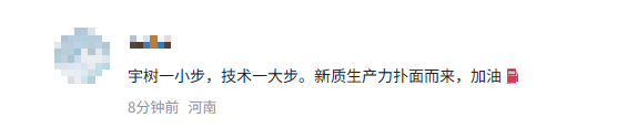 在宇树机器人拉车的视频中,也有不少网友表示看好,在评论区表示:宇树一小步,科技一大步!
