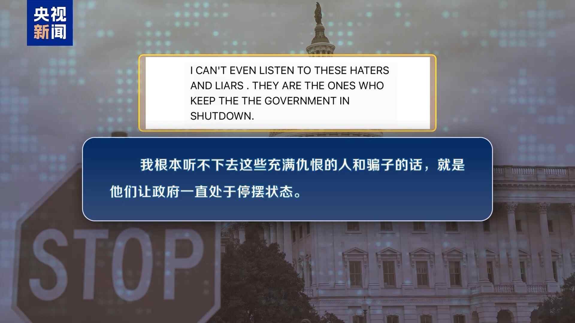 对此,有网友怒斥:“我根本听不下去这些充满仇恨的人和骗子的话,就是他们让政府一直处于停摆状态。”“政客本身就是联邦公职人员,政府停摆时,他们也不该拿工资。”