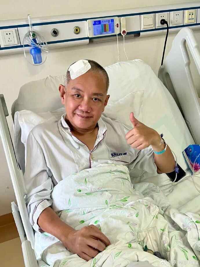 随微博消息发出的多张图片显示,病床上的李偲菘头发已剃光,且头上粘着胶布,显然已做了脑部手术。