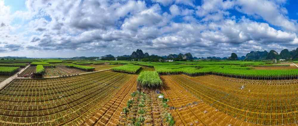 ↑2025年10月20日,农民在广西龙州县上龙乡水陇屯万亩黑皮果蔗种植基地采收甘蔗。(无人机全景照片)CICPHOTO/喻湘泉 摄