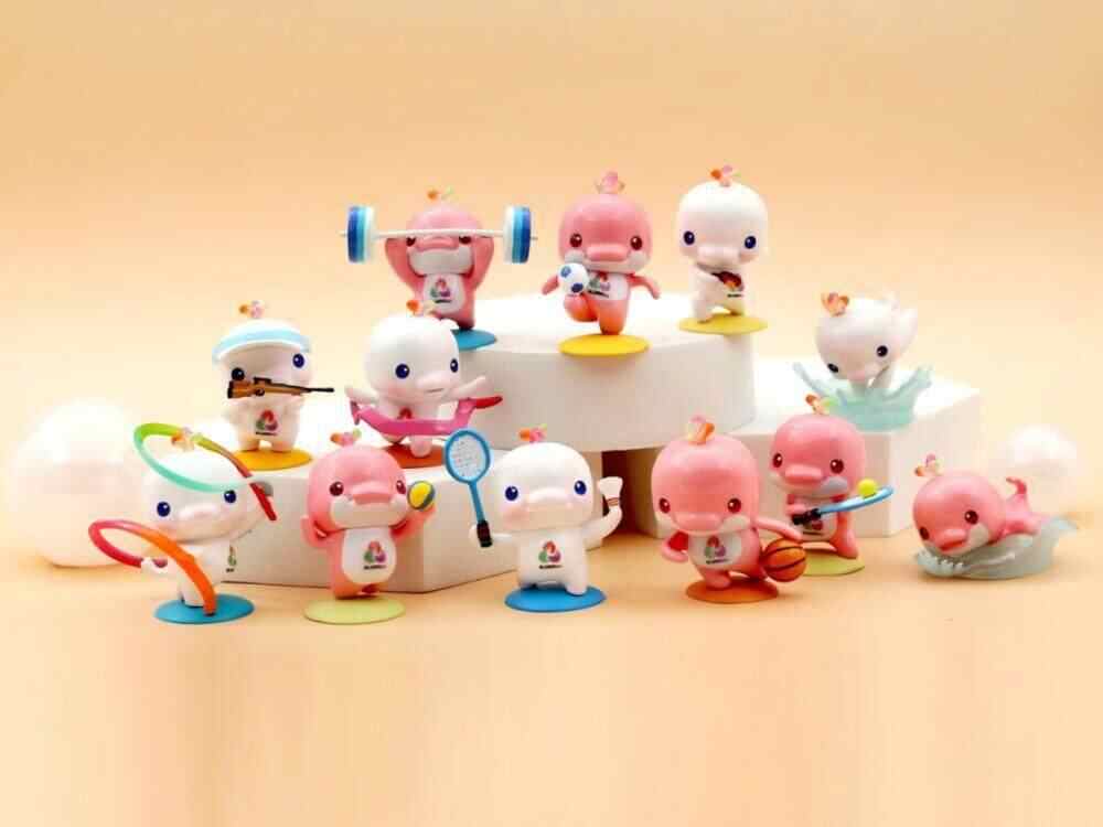 该区域陈列以吉祥物运动造型为主题的“萌粒”系列商品,体型小巧、造型生动,展现出各项体育运动的精彩瞬间。
