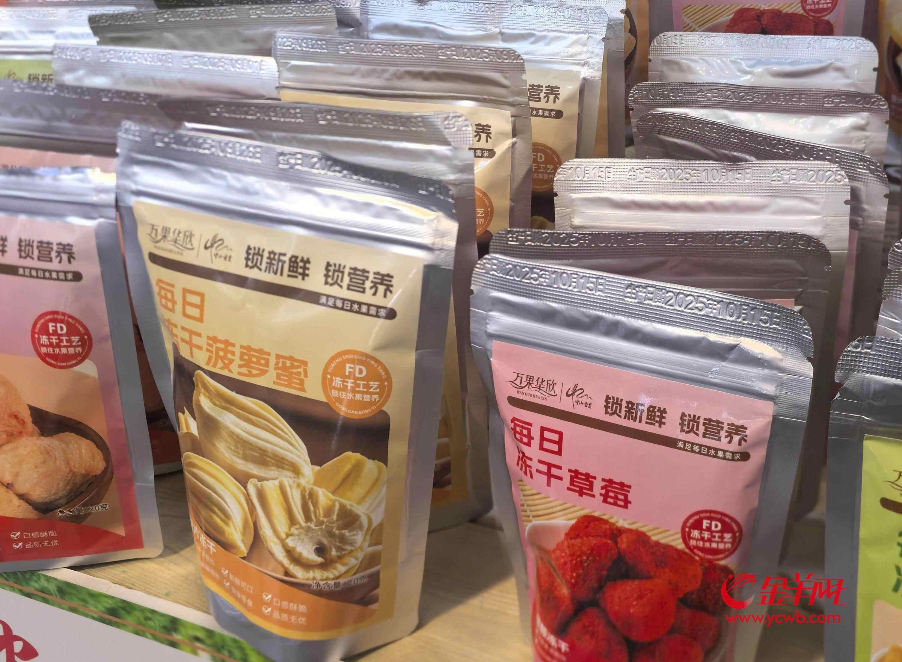 中山市万华农业科技有限公司以种火龙果起家,但这次参展的清一色是水果冻干。董事长邱海燕告诉记者:“鲜果的销售周期太短了,所以近年来我们除了卖鲜果,一直积极研究水果的精深加工,水果冻干就是一个很好的赛道。目前国内的冻干市场才刚起步,这几天消费者的反馈都很积极,也给了我们很多建议。我们现在除了开拓国内市场,还积极研究出海业务,精深加工的农产品才能走得更远。”