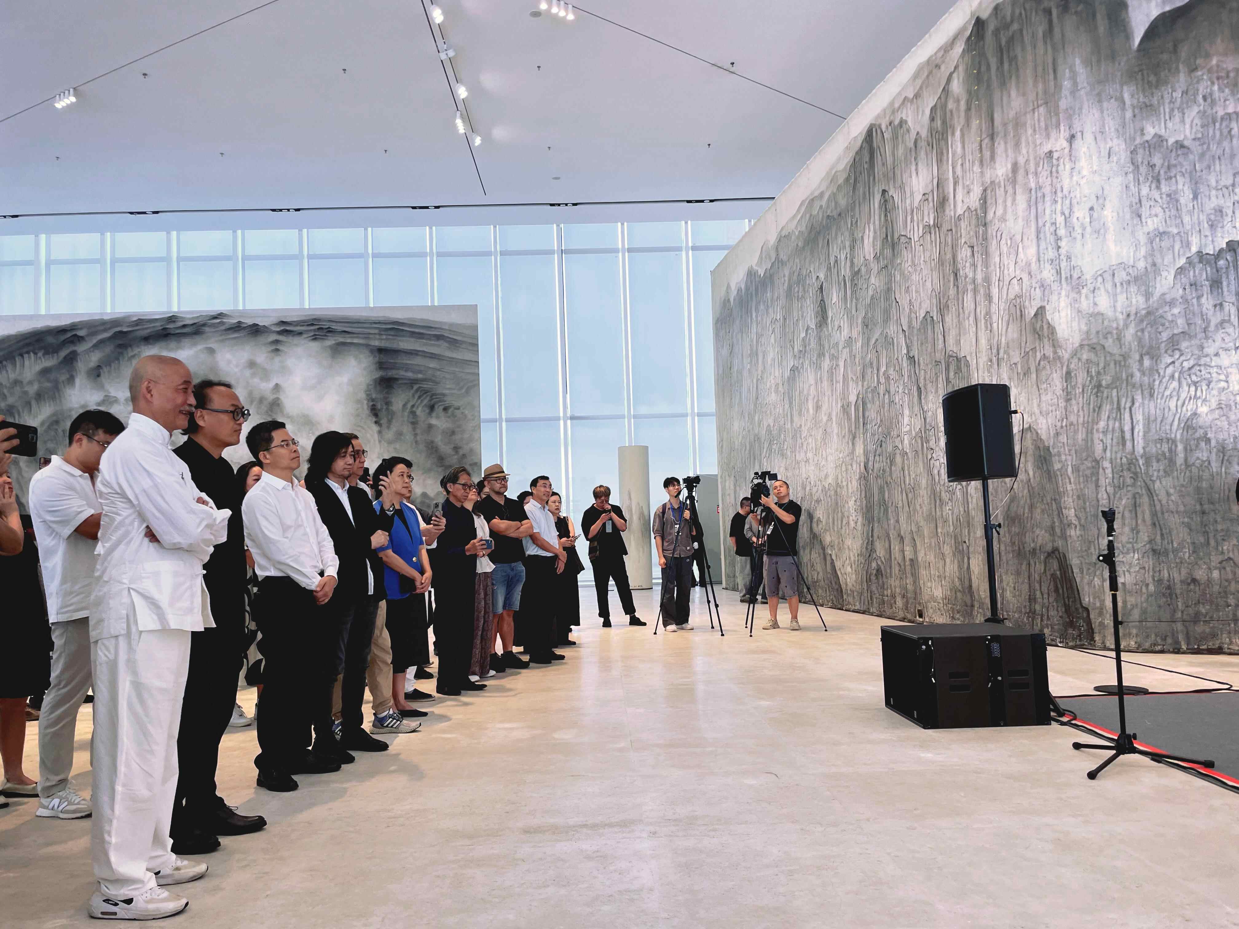 在徐龙森看来,巨幅山水画的价值,不仅在于体量的突破,更在于让山水画实现了从“私人欣赏”到“公共表达”的转变。“历史上,山水画多在家庭等私人空间展示,空间面积可能只有四五十平方米。而如今,在美术馆等公共空间,巨幅山水装置能与空间产生互动,形成强大的视觉张力,让观众沉浸式感受山水文化的魅力。”