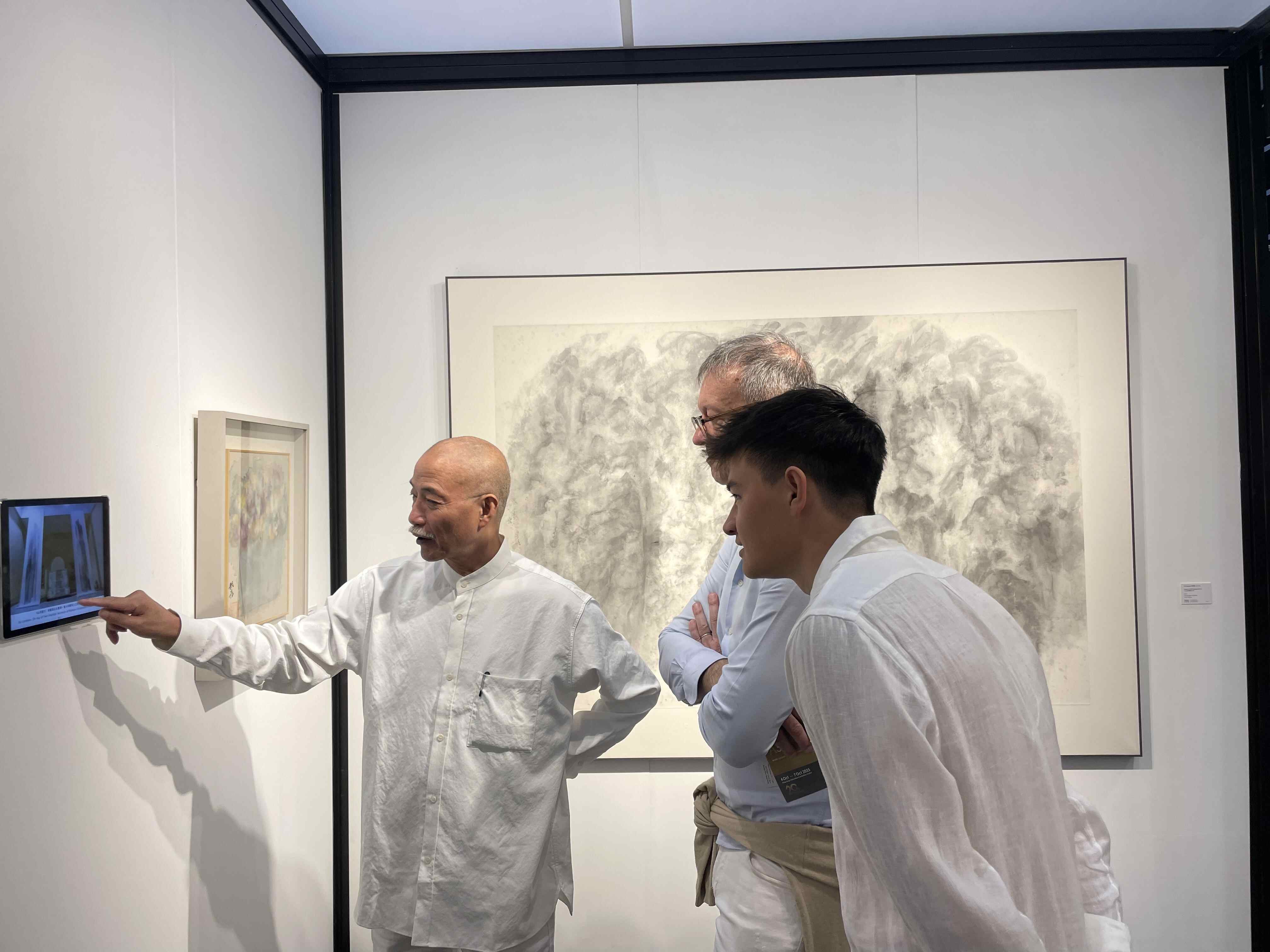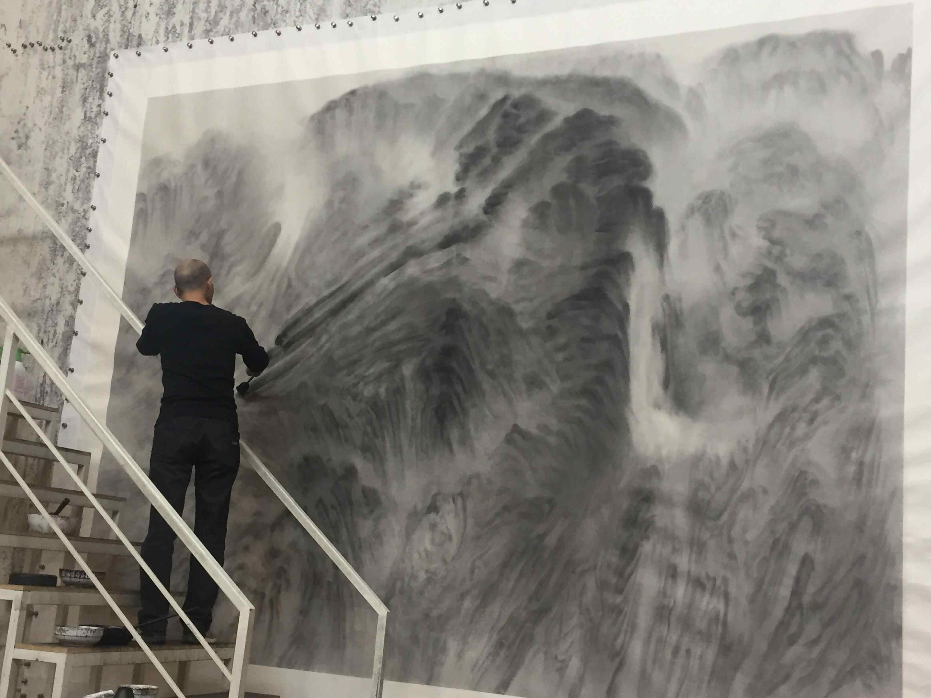 但他强调,“革新”并非“割裂”,传统的根基仍在:“比如元代山水画注重的层层渲染,就像交响乐中的和声,是画面气韵的基石。在巨幅创作中,我们更需要深入理解笔墨背后的精神内核,将传统精髓与现代创作需求结合。”