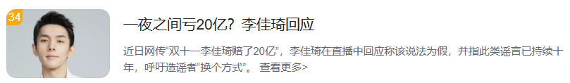 近日,“双十一李佳琦赔了20亿”“一觉醒来退款9亿”……等相关网帖在某社交平台上大量出现。