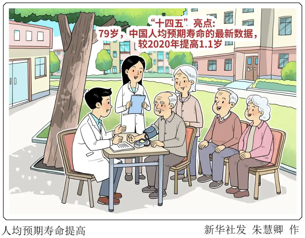 79岁,是中国人均预期寿命的最新数据,较2020年提高1.1岁,全国已有8个省份率先突破80岁大关,居民主要健康指标居于中高收入国家前列。